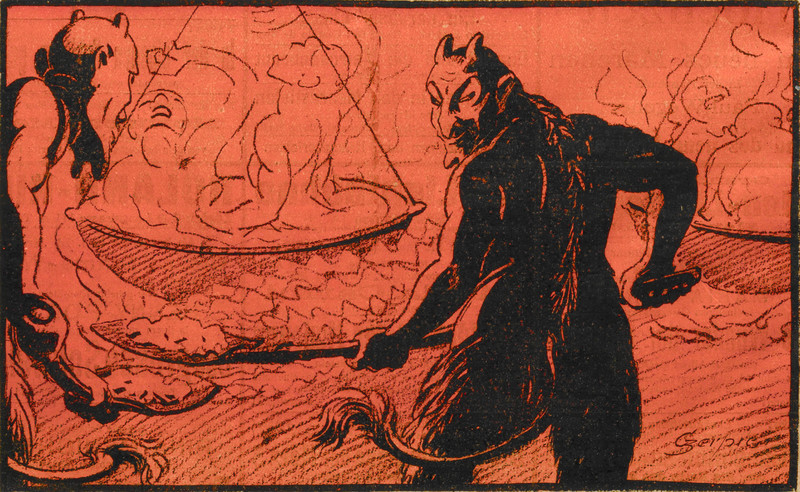 #vintage illustration #demon #hell #torment #boiled alive