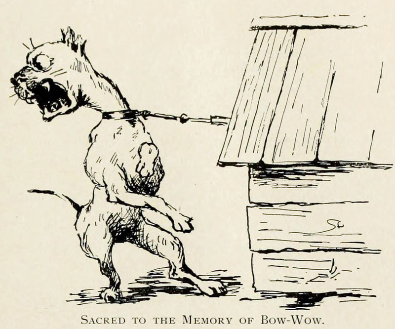 Here's a precursor to David Lynch's comic strip "The Angriest Dog in the World," about a dog "so angry he cannot move; he cannot eat; he cannot sleep; he can just barely growl; bound so tightly with tension and anger, he approaches the state of rigor mortis." This vintage angriest dog appears in Johns Hopkins' 1895 yearbook.