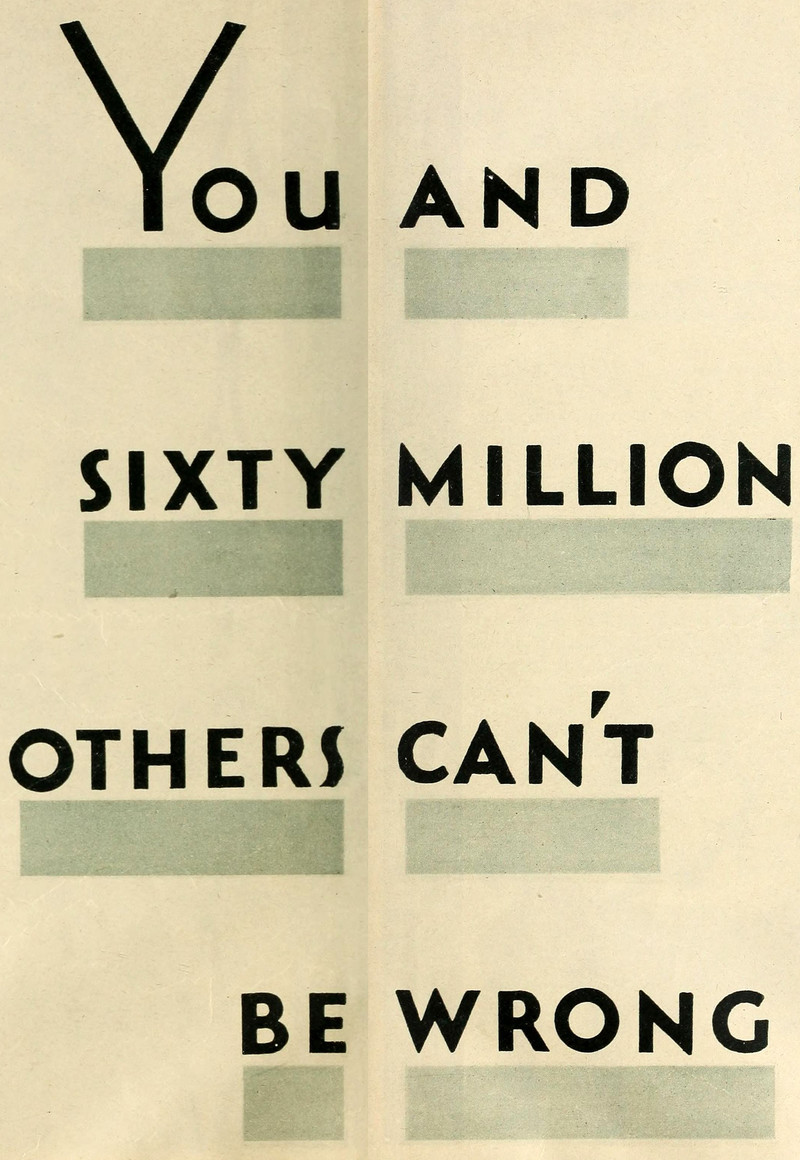 Great news -- "you and sixty million others can't be wrong."  From Talking Screen, 1930.