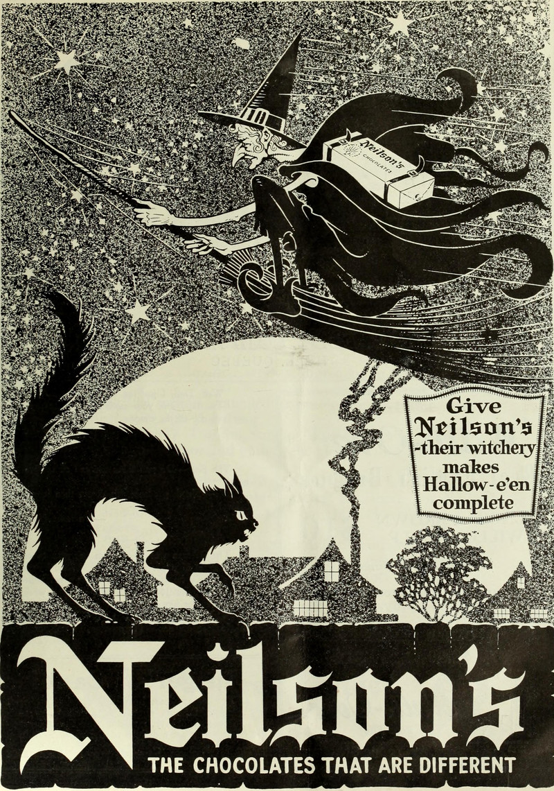 #vintage illustration #vintage ad #witch #black cat #hallowe'en #illustration #chocolate #ad