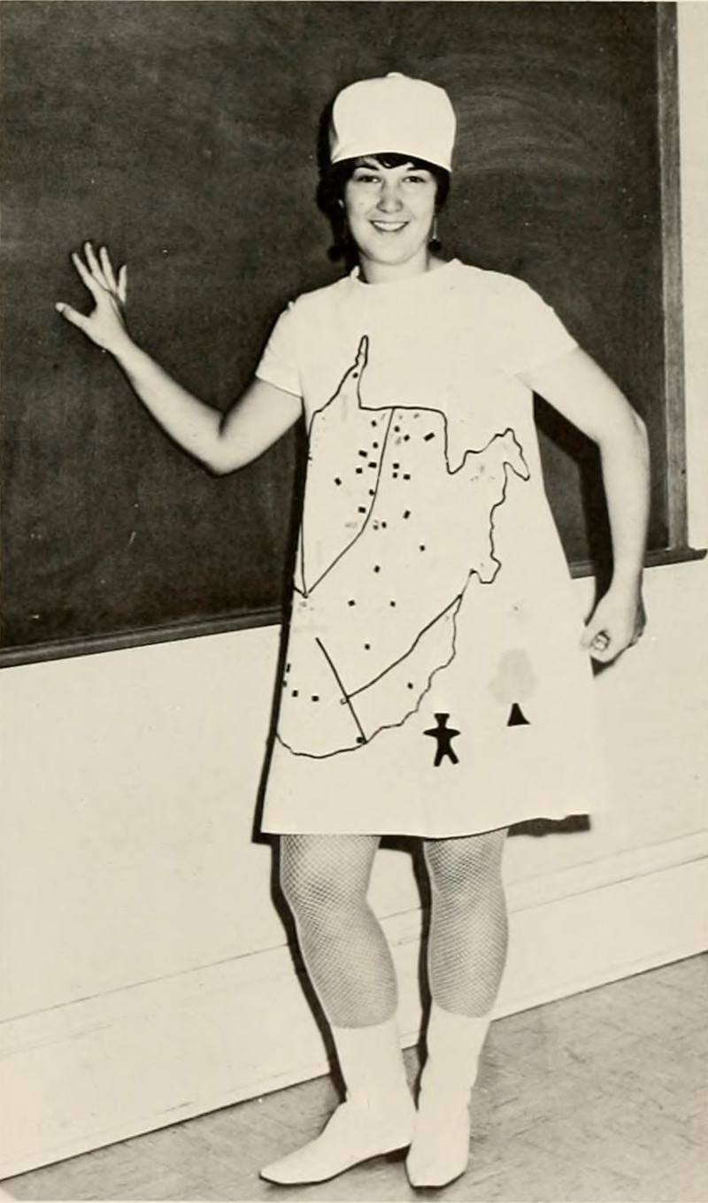 This dress was named "West Virginia on the Go-Go" and won first place at a state convention for student nurses. From West Virginia Wesleyan's 1967 yearbook.