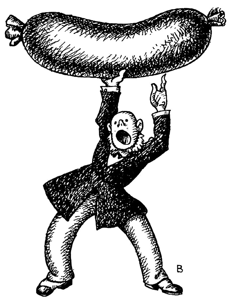 Non-Europeans will never be able to comprehend Europeans' obsession with sausage. It is a worldview one must be born into and cannot otherwise acquire or understand even theoretically. From Der Bärenspiegel, 1925.