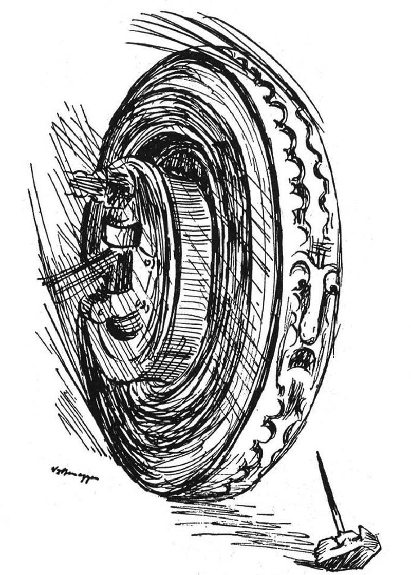 #vintage illustration #anthropomorphism #faces in things #1930s #tire