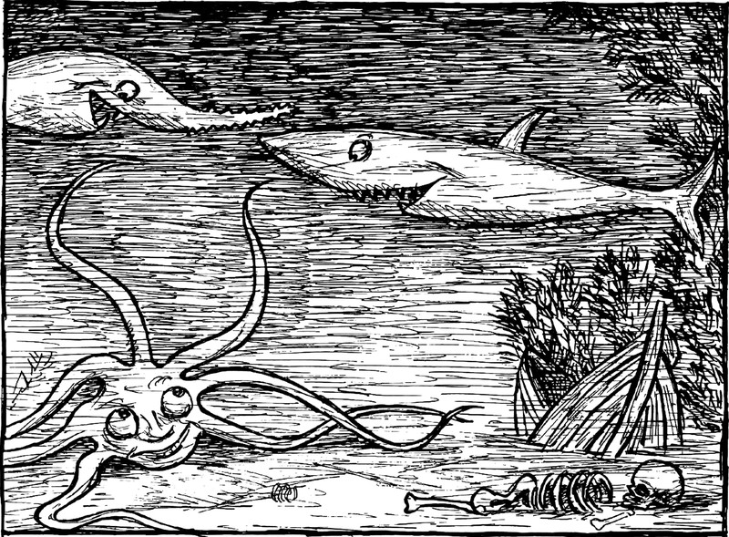 #vintage illustration #octopus #under the sea #shark #tentacles