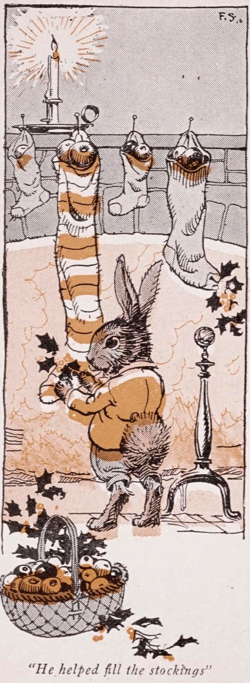 #vintage illustration #vintage christmas #christmas #rabbit #bunny #stockings
