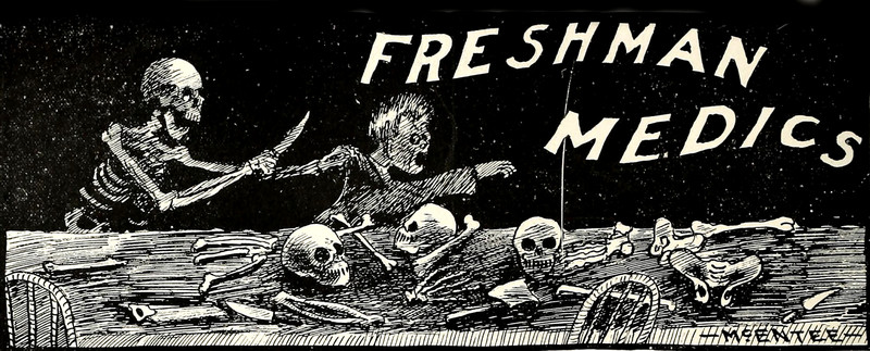 #vintage illustration #skeleton #living dead #vintage yearbook #yearbook #knife