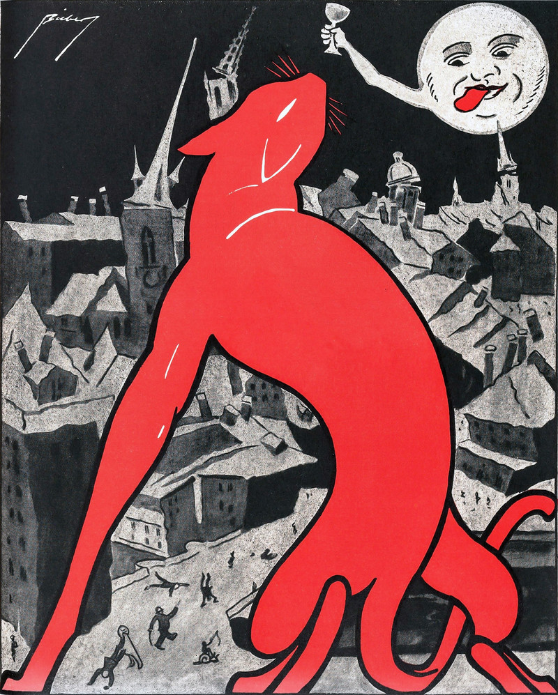 #vintage illustration #man in the moon #cat #giant cat #1930s #tongue out #red cat