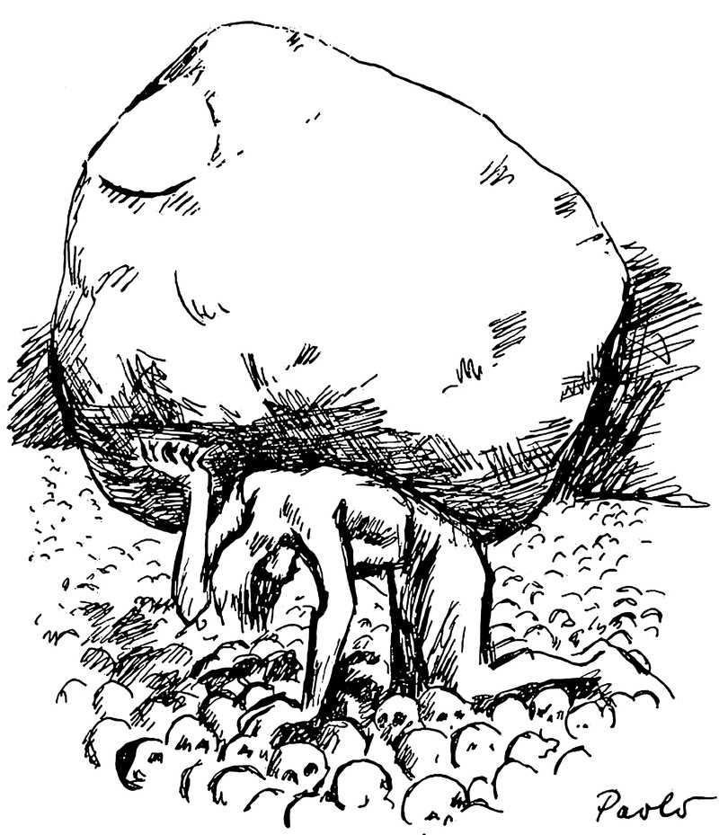 #vintage illustration #skulls #weight of the world #crushed #boulder #illustration