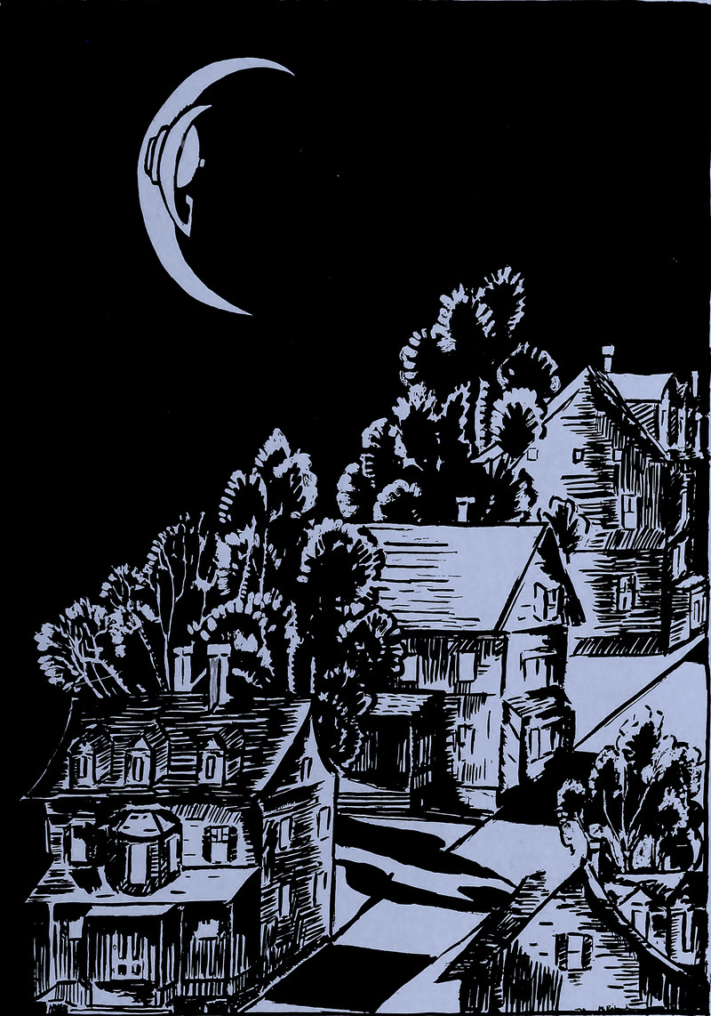 #vintage illustration #moon #vintage yearbook #yearbook #night #oil lamp