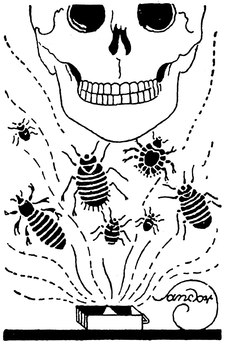 #vintage illustration #vintage ad #skull #insects #insecticide #bugs #ad