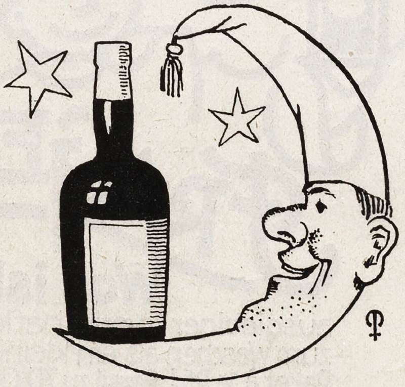#vintage illustration #vintage ad #anthropomorphism #man in the moon #1920s #bottle #ad