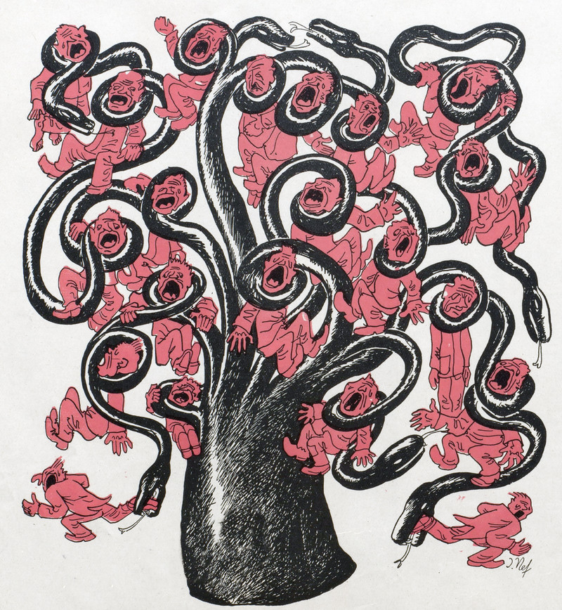 #vintage illustration #serpents #hydra #1930s #constrictor #many headed #strangled
