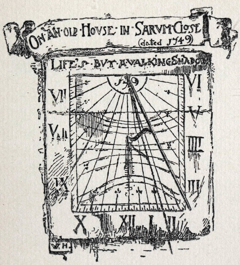 "Life's but a walking shadow."  A sundial from The Book of Old Sundials and their Mottoes by Launcelot Cross, 1922.