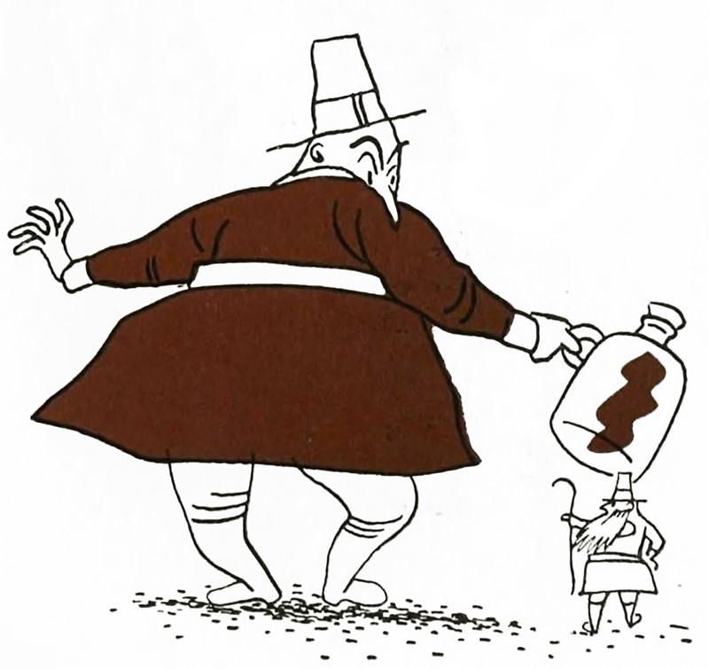 #vintage illustration #giant #alcohol #tiny man #1930s #puritan #illustration #bottle