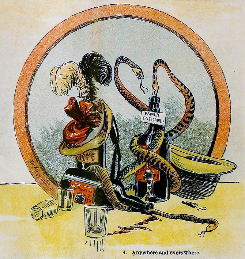 A bottle with a "family entrance."  From The Wasp, 1892.