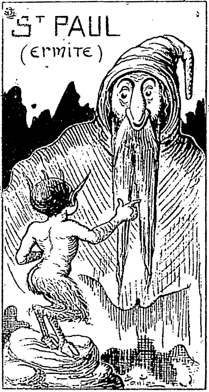 #vintage illustration #demon #imp #monk #saint #st. paul