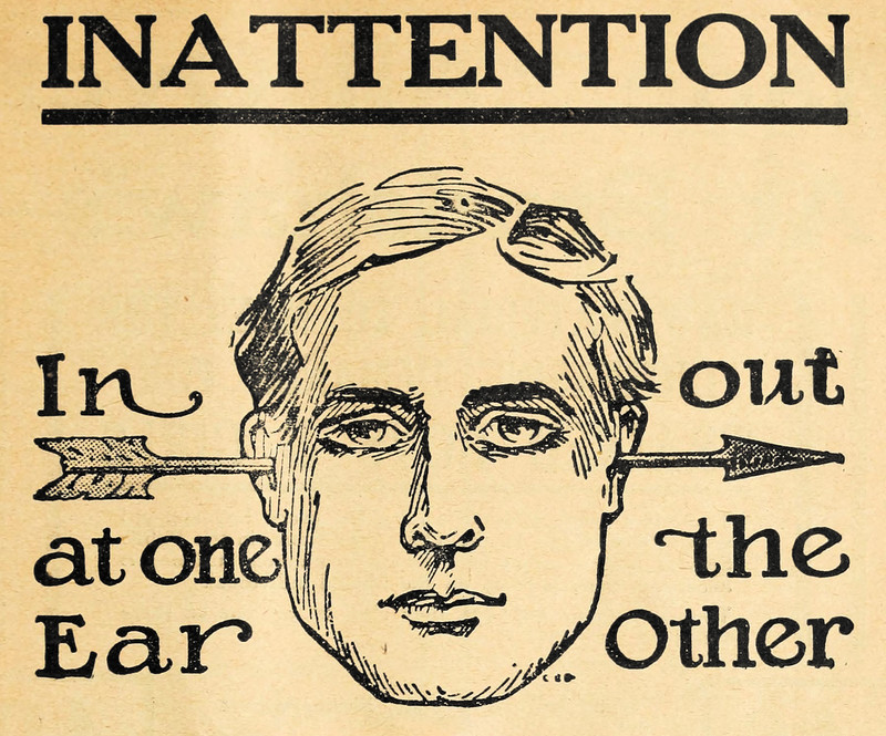 #vintage illustration #vintage ad #arrow through the head #arrow #inattention #ad