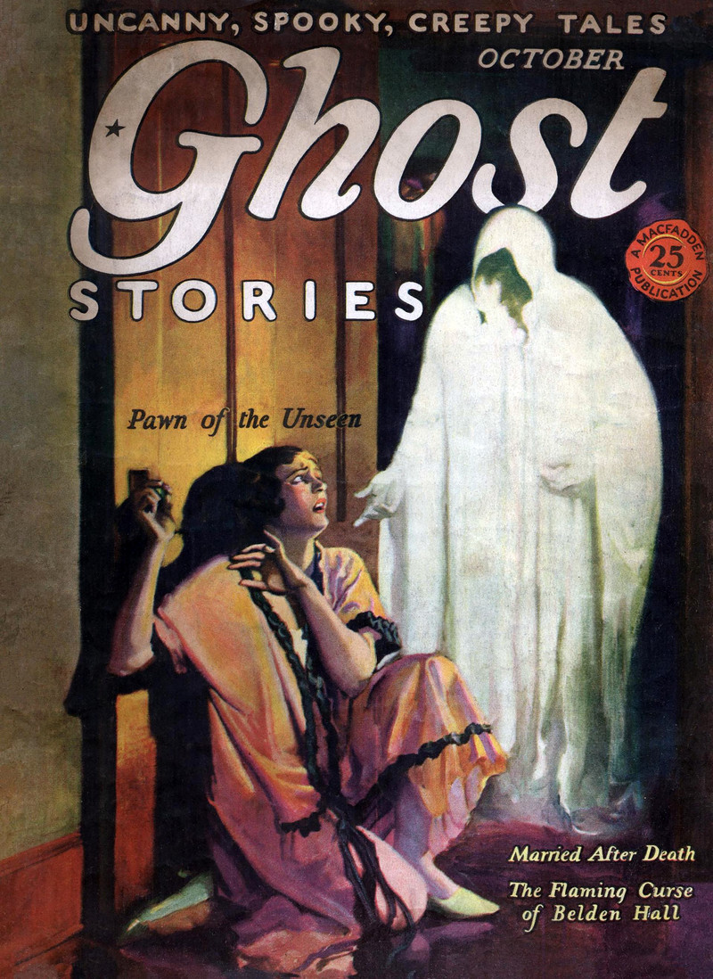 We, too, are a "pawn of the unseen."  From Ghost Stories, 1926.  See Of Feeding & Caring For Sheet Ghosts.