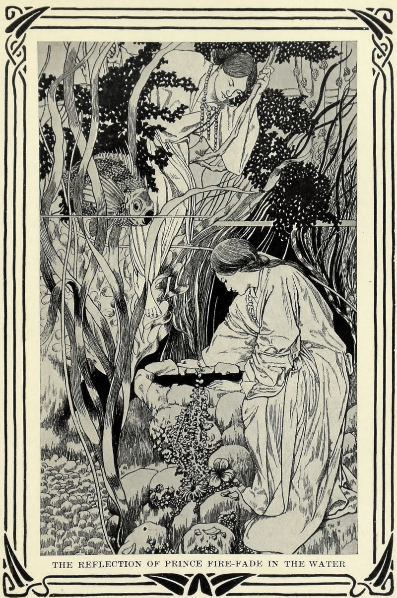 "The reflection of Prince Fire-Fade in the water."  From Myths From Many Lands by Eva March Tappan, 1907.