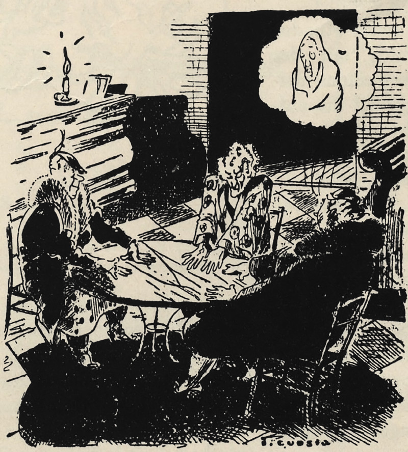 From Nebelspalter, 1938.  See Seance Parlor Feng Shui.