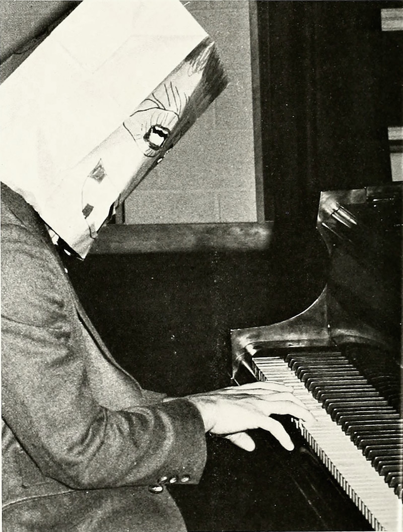 #vintage illustration #vintage photo #vintage yearbook #pianist #1970s #paper bag head #bag over the head #unknown pianist