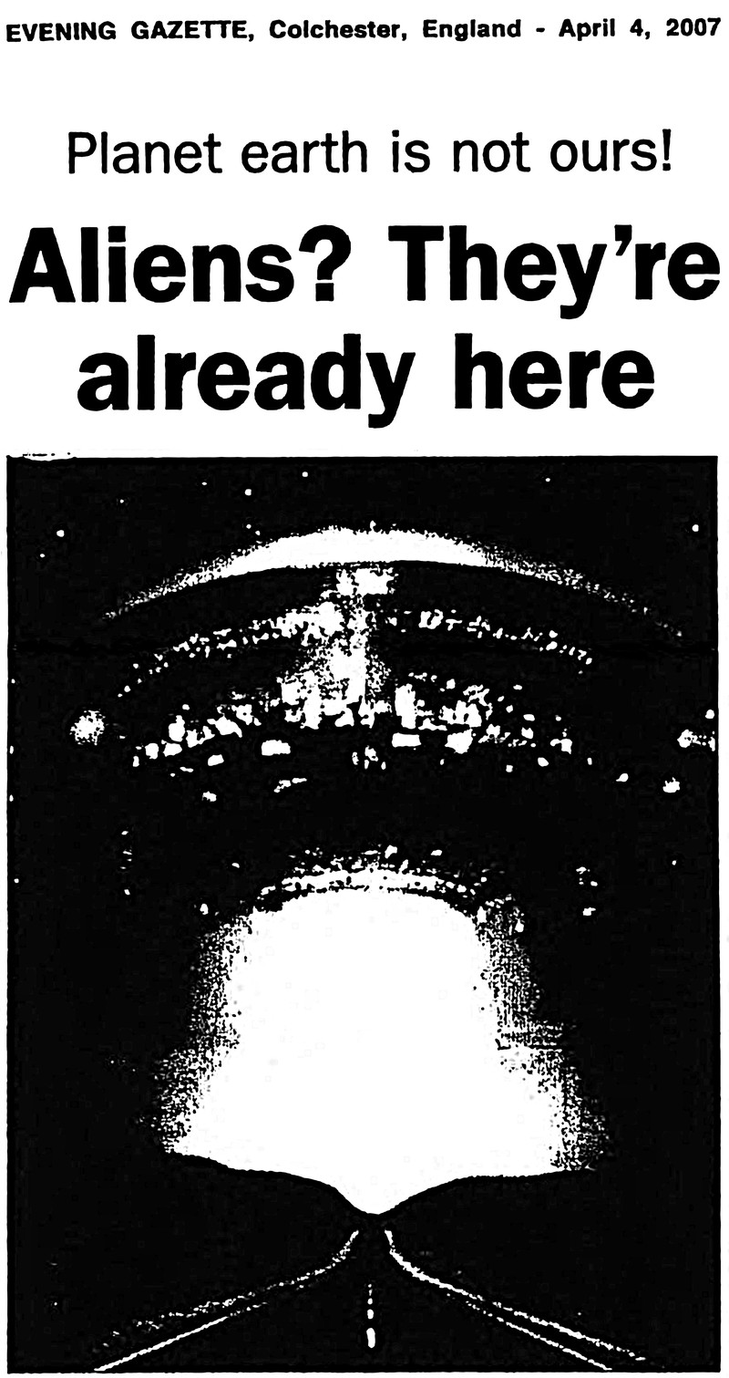 "Planet earth is not ours!  Aliens?  They're already here."  From UFO Newsclipping Service, 2007.