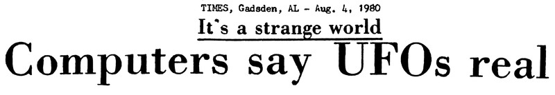 The issue was put to rest in 1980, so why is there still debate?  "Computers say UFOs real."  From UFO Newsclipping Service, 1980.