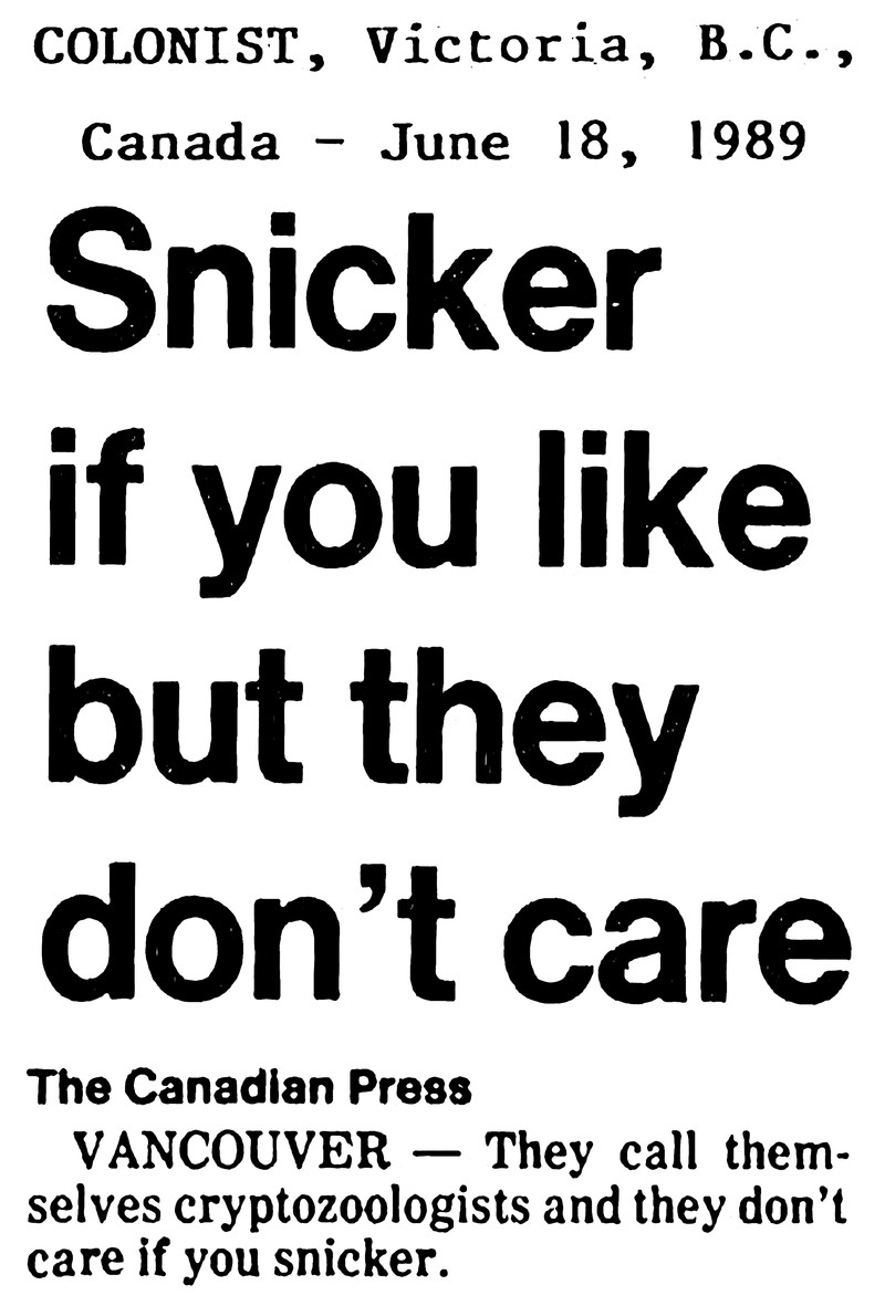 "Snicker if you like but [cryptozoologists] don't care."  They write stuff like How to Spot the Loch Ness Monster Every Time and A Field Guide to Identifying Unicorns by Sound.