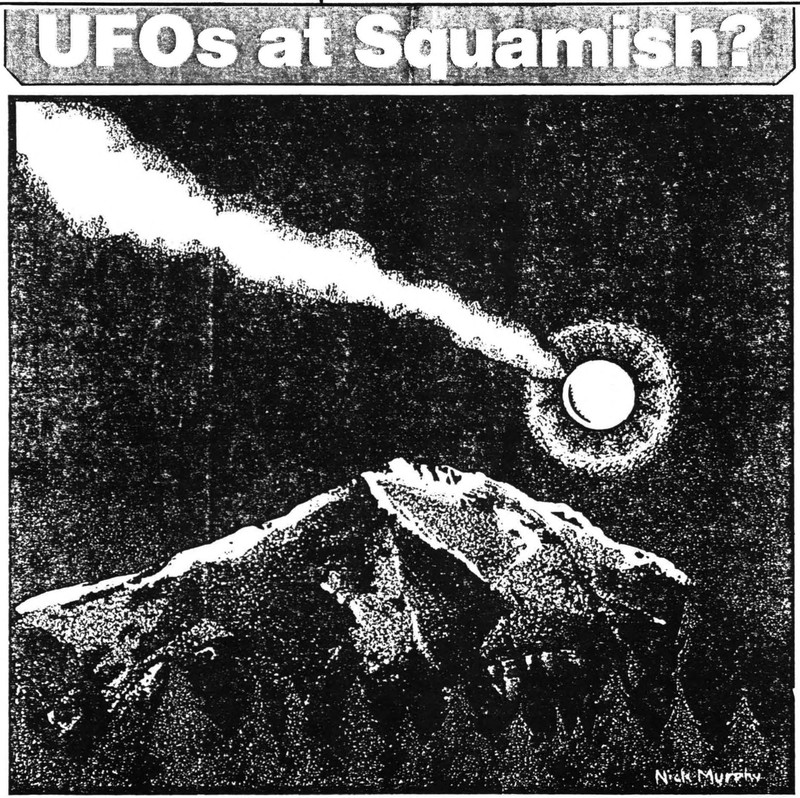 We've been called back to the "Chief" mountain at Squamish several times — a powerfully imposing (terrifying) rock face, and no surprise that it could draw UFOs.  From UFO Newsclipping Service, 1986.