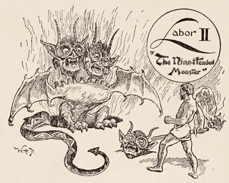 The second labor of Hercules.  From Stories of Classic Myths Retold From St. Nicholas, 1909.