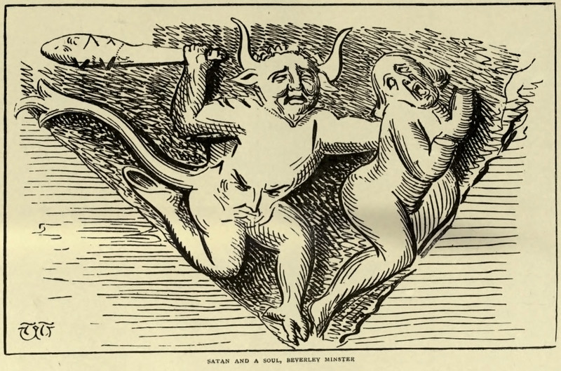 "Satan and a soul."  From The Grotesque in Church Art by T. Tindall Wildridge, 1899.