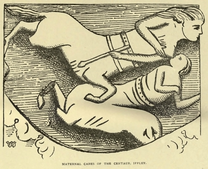 "Maternal cares of the centaur."  From The Grotesque in Church Art by T. Tindall Wildridge, 1899.