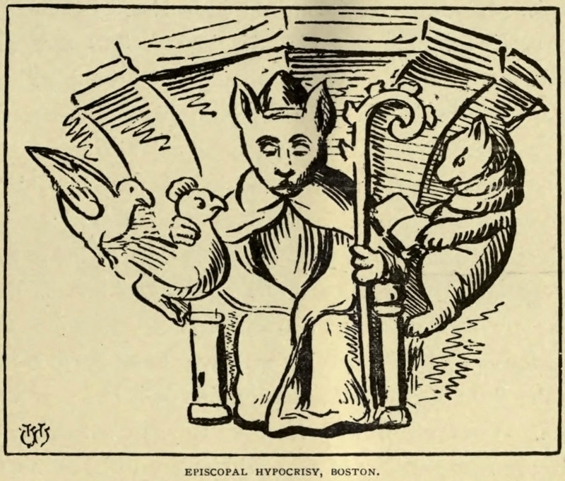 "Episcopal hypocrisy."  From The Grotesque in Church Art by T. Tindall Wildridge, 1899.