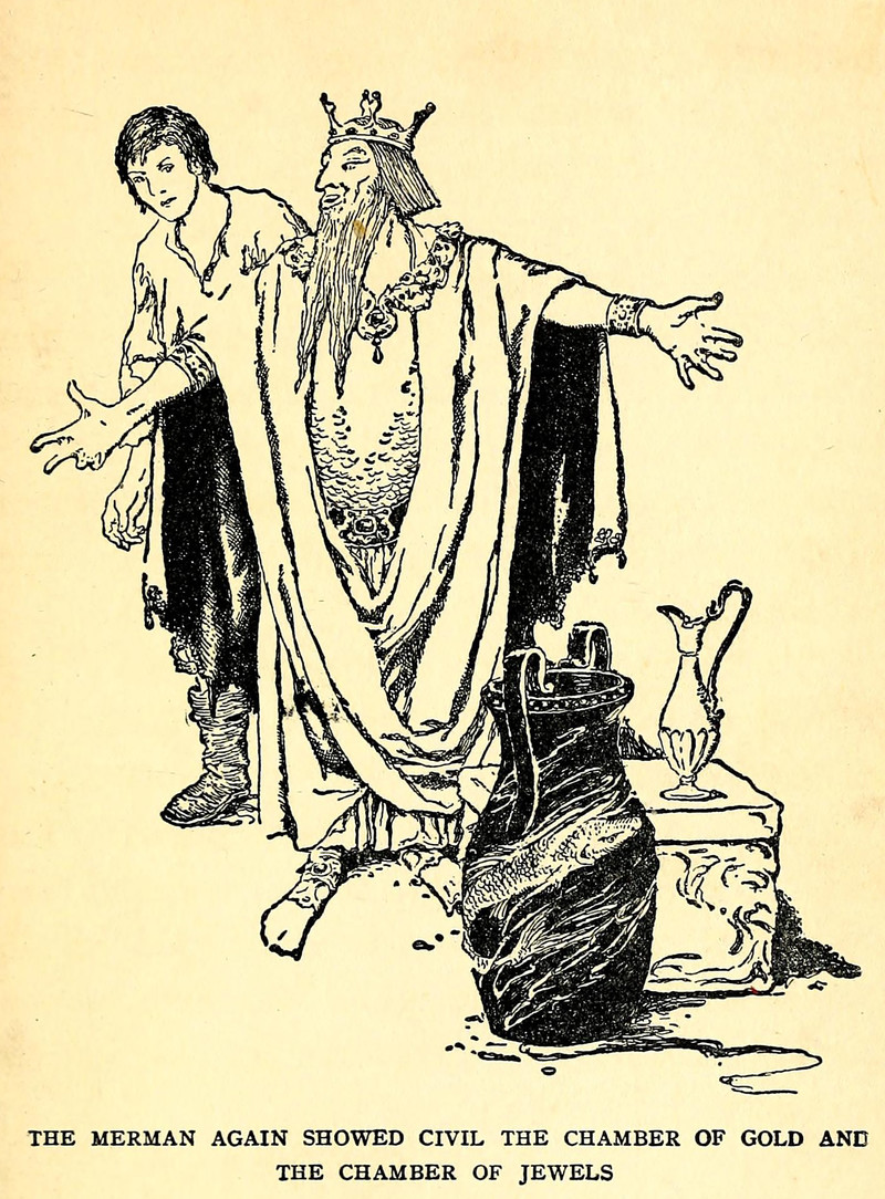#vintage illustration #king #merman #treasure
