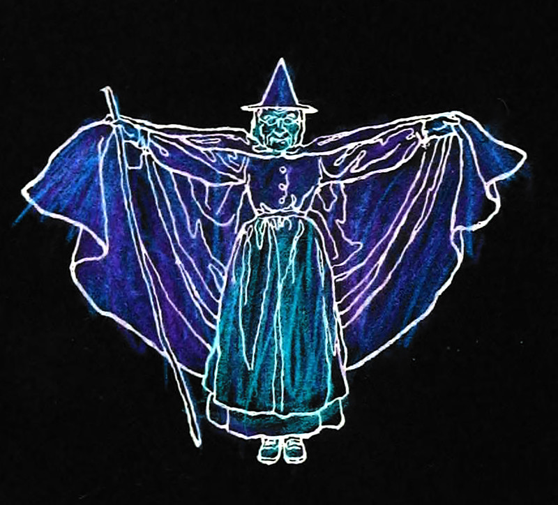 An inversion of a crayon-colored illustration fromĀ The Counterpane Fairy, written and illustrated by Katharine Pyle, 1898.