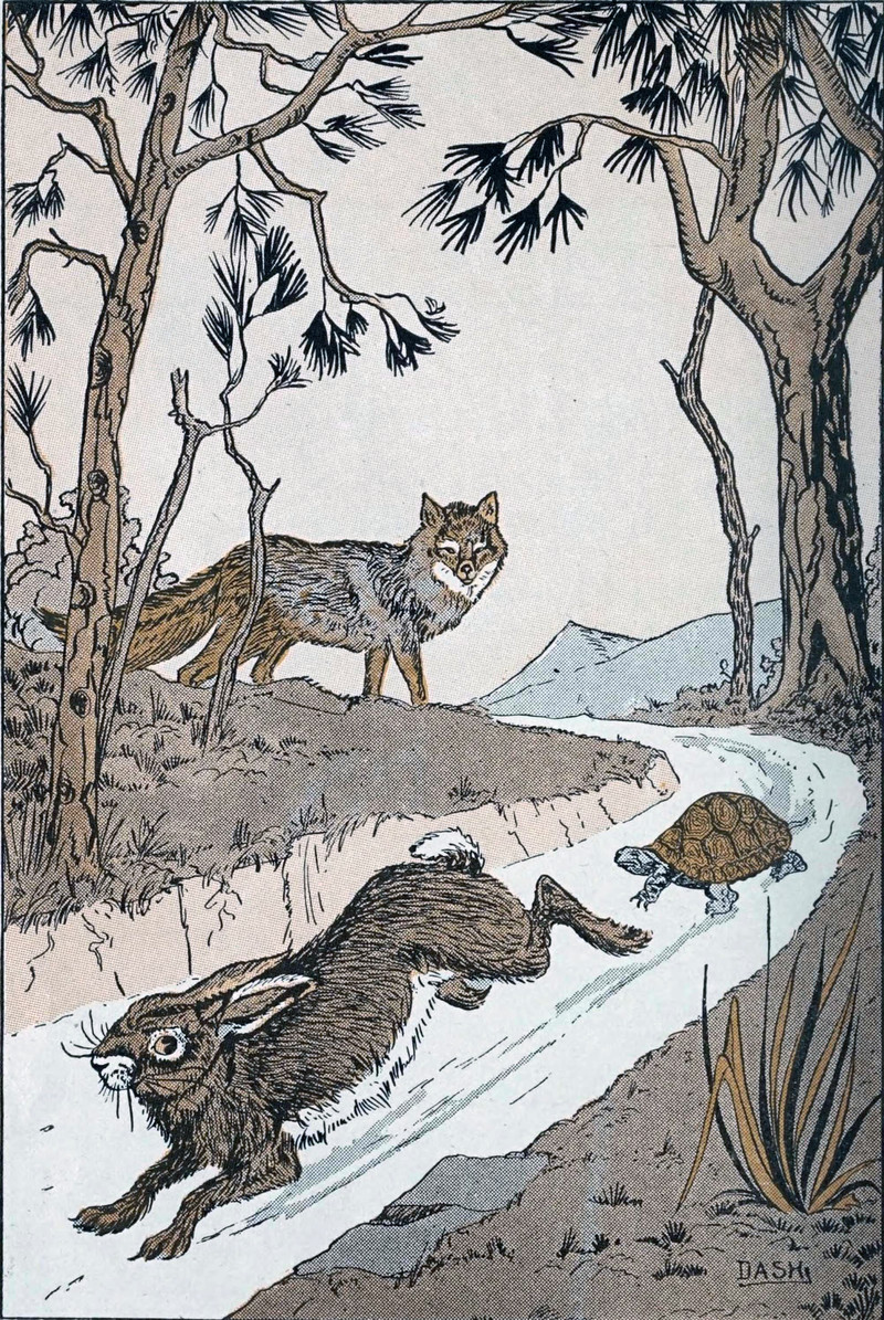 #vintage illustration #fable #hare #turtle #tortoise and the hare