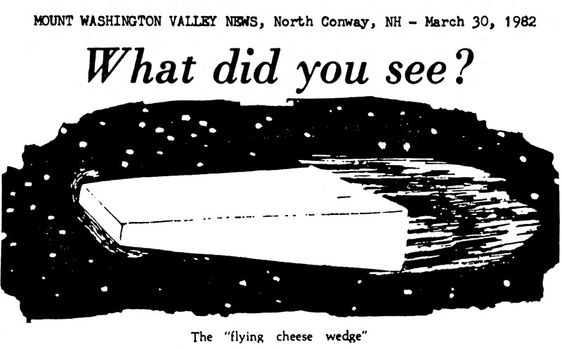 The "flying cheese wedge" UFO.  From UFO Newsclipping Service, 1982.