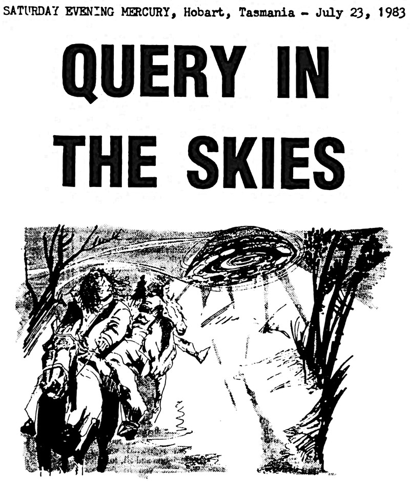 "Query in the skies."  From UFO Newsclipping Service, 1983.