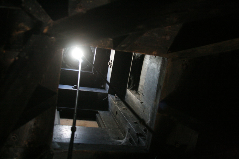 Looking up the tower of the camera obscura at Portmeirion, Wales.