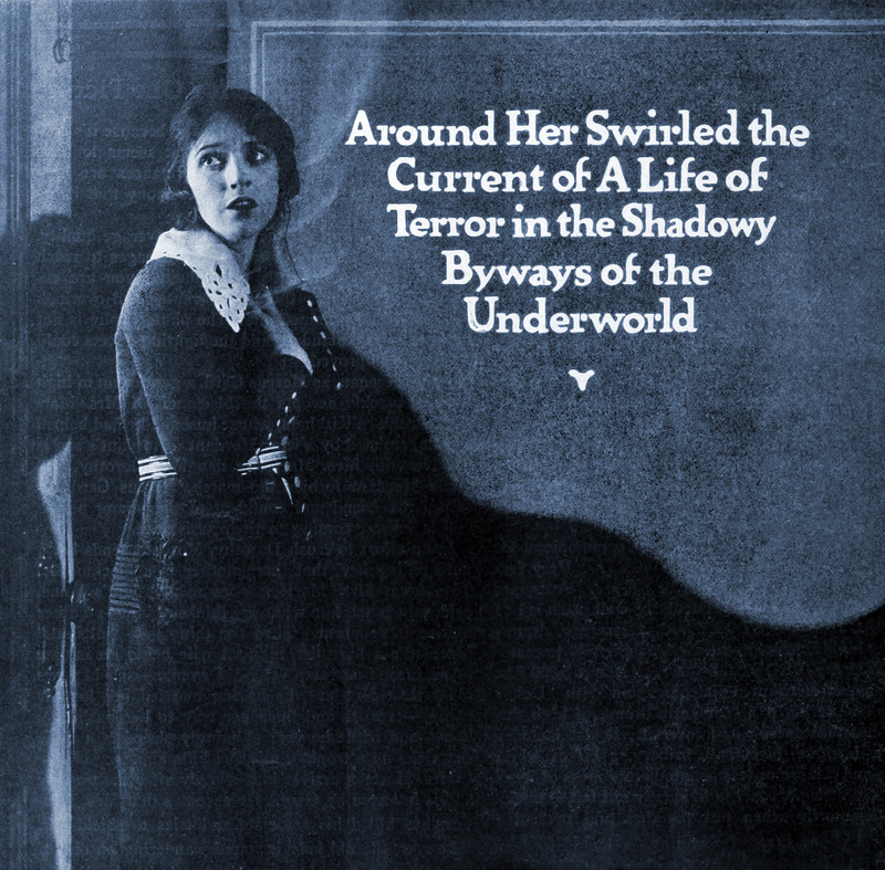 "Around her swirled the current of a life of terror in the shadowy byways of the underworld."  From Wid's Daily, 1920.