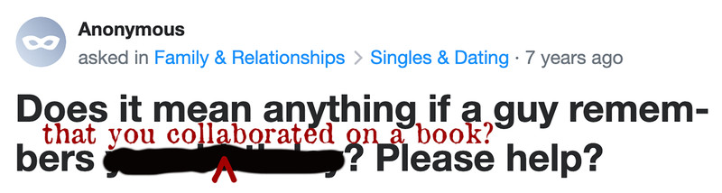 In the style of Yahoo!answers, "Does it mean anything if a guy remembers that you collaborated on a book?" Yes—it means a lot! We were delighted to receive a