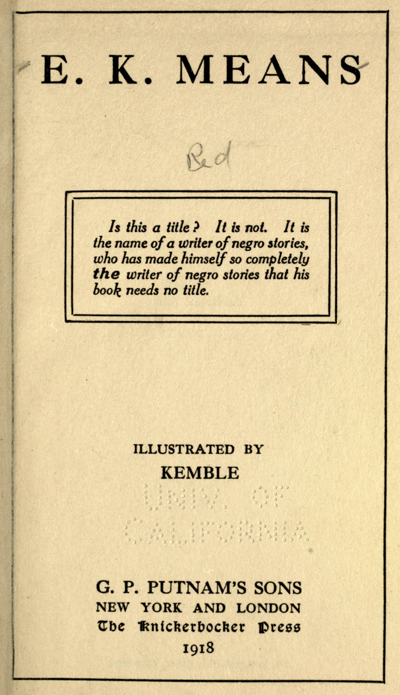 The author's name is the title, and it's not an autobiography. The explanatory text says, "Is this a title? It is not." From E. K. Means by Eldred Kurtz Means.