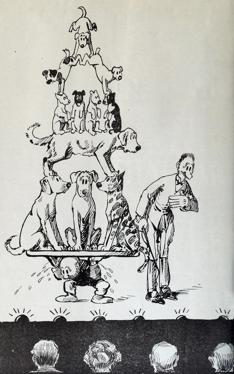 #vintage illustration #balancing act #dog #pet tricks #vaudeville #acrobatic