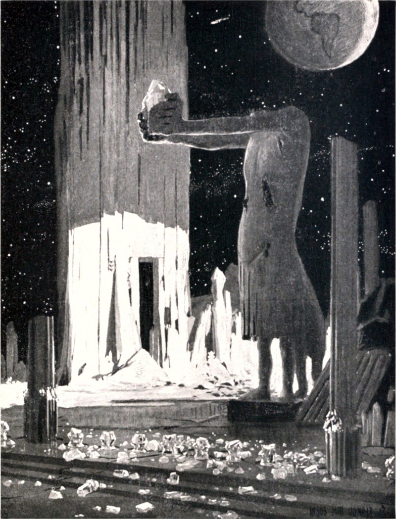 Ruins on the moon.  From Drowsy by John Ames Mitchell, 1917.