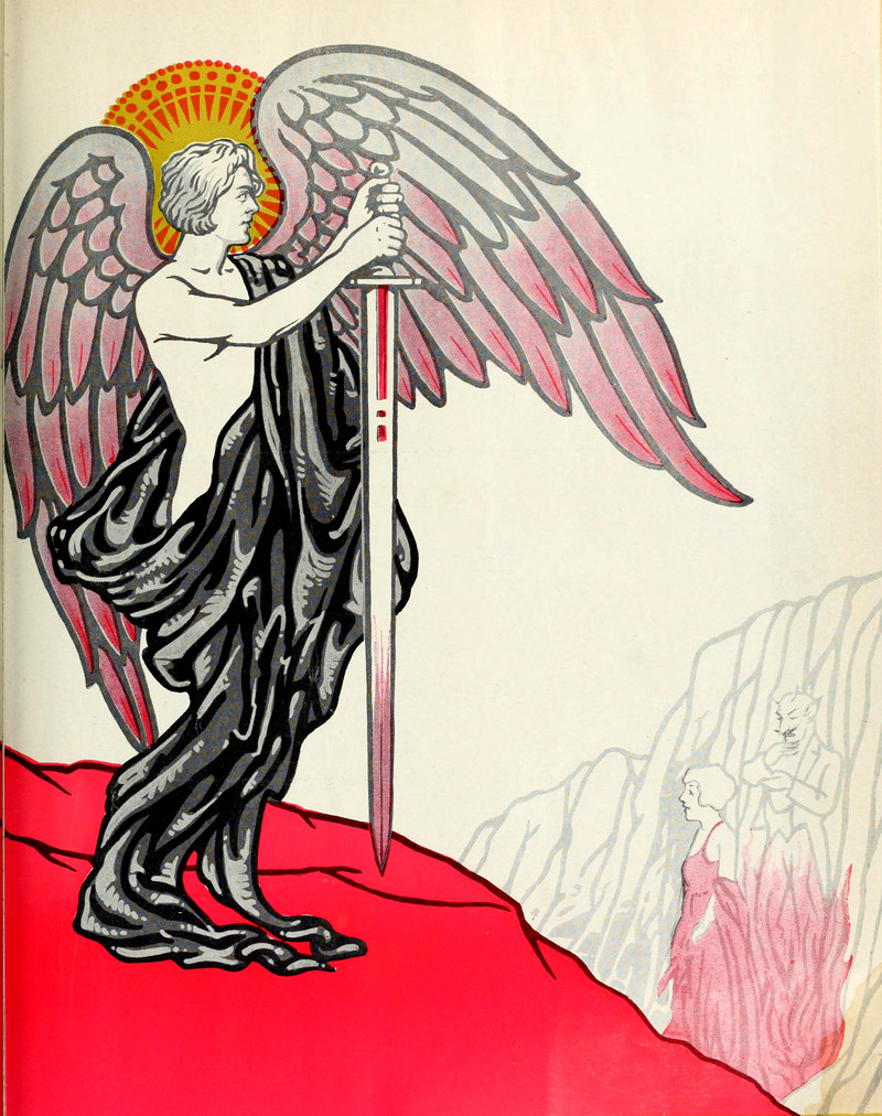 #vintage illustration #vintage ad #angel #good and evil #sword #ad