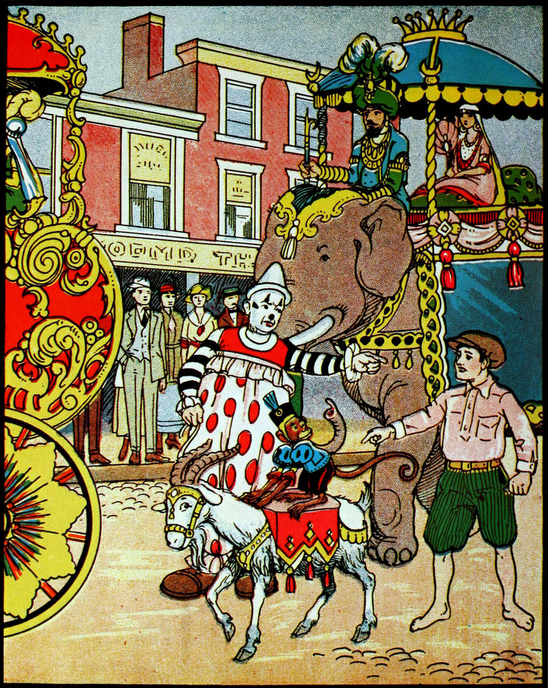 #vintage illustration #elephant #goat #clown #circus