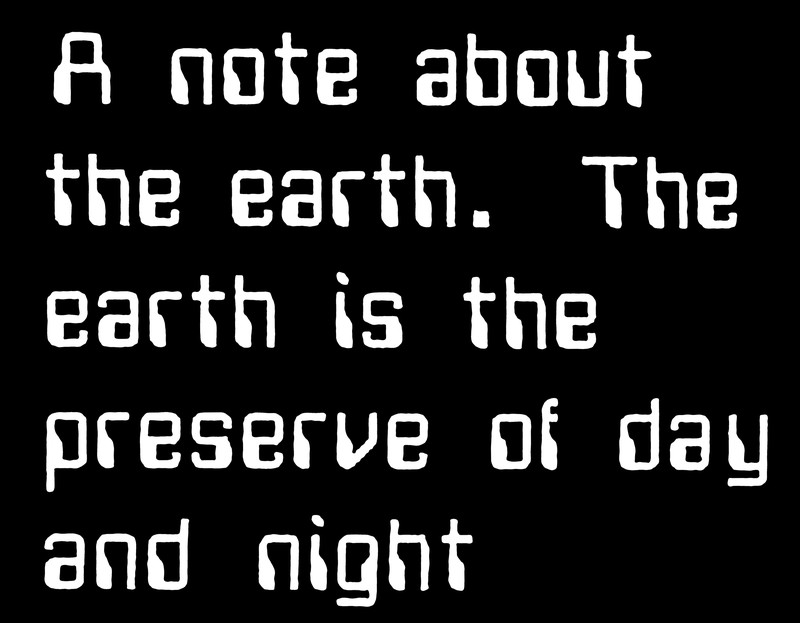 "A note about the earth.  The earth is the preserve of day and night."  From the Innis Herald, 1995.