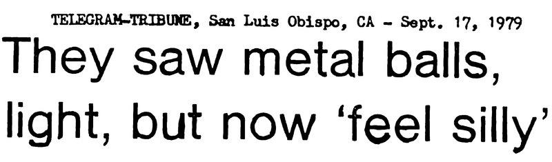 "They saw metal balls, light, but now 'feel silly.'"  From UFO Newsclipping Service, 1979.