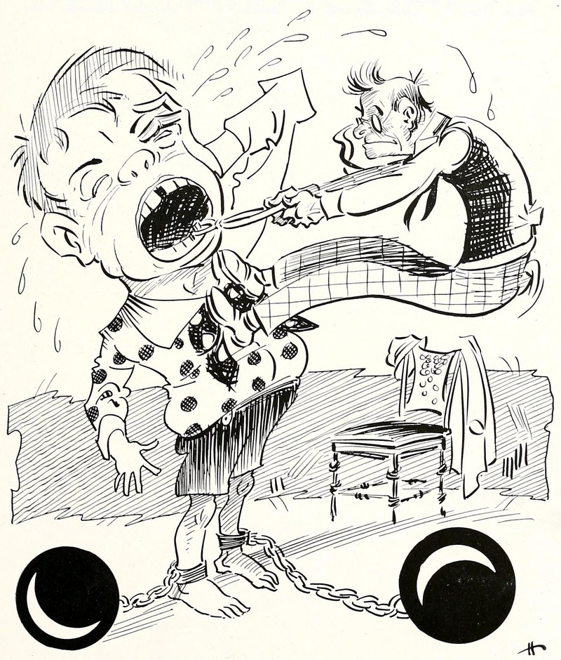 #vintage illustration #vintage yearbook #yearbook #tiny man #ball and chain #dentist #pull the tooth