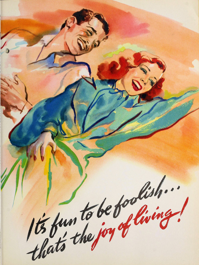 "It's fun to be foolish ... that's the joy of living!"  Irene Dunne and Douglas Fairbanks Jr. in Joy of Living.  From The Film Daily, 1938.